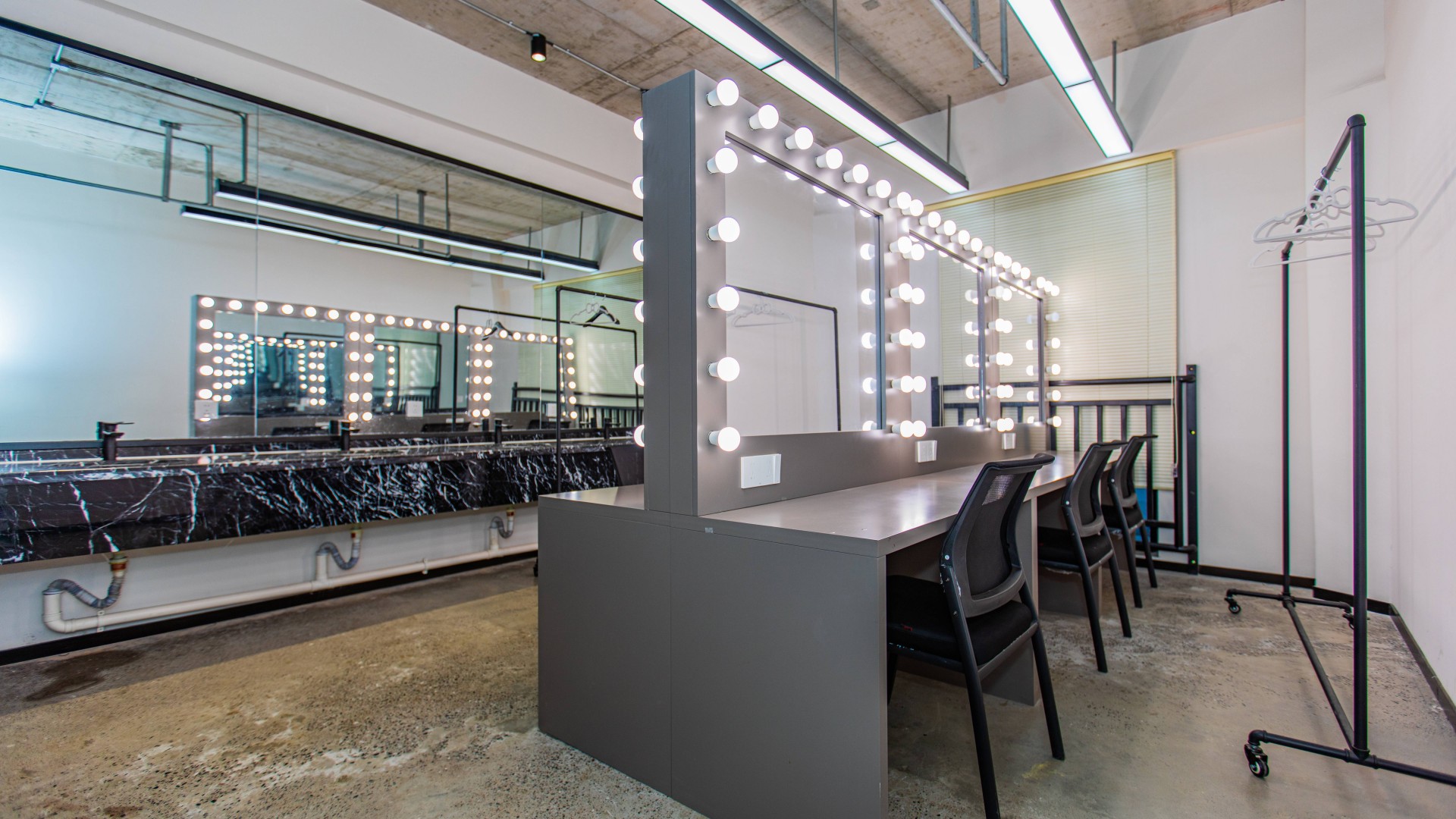 棚内配套设施齐全,全棚中央空调覆盖,冷热自如调控,片场内部化妆间、贵宾室、会议室、休闲大厅、用餐区等一应俱全,可满足影视行业多样化场景需求,同时提供置景、器材、美术、拍摄等全面化配套服务。