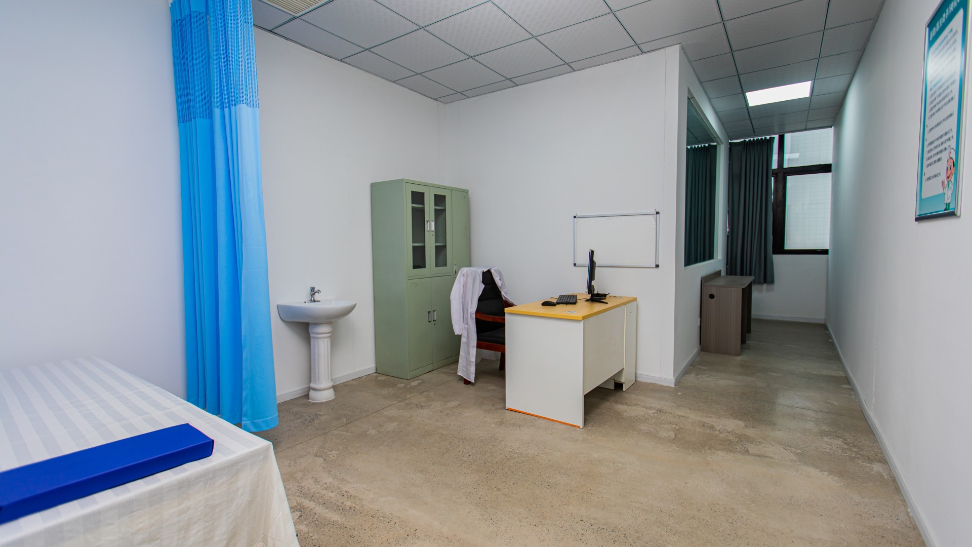 医院主题实景棚涵盖:输液大厅、医院长廊、药房、病房、手术室、医生诊室、护士站等场景。