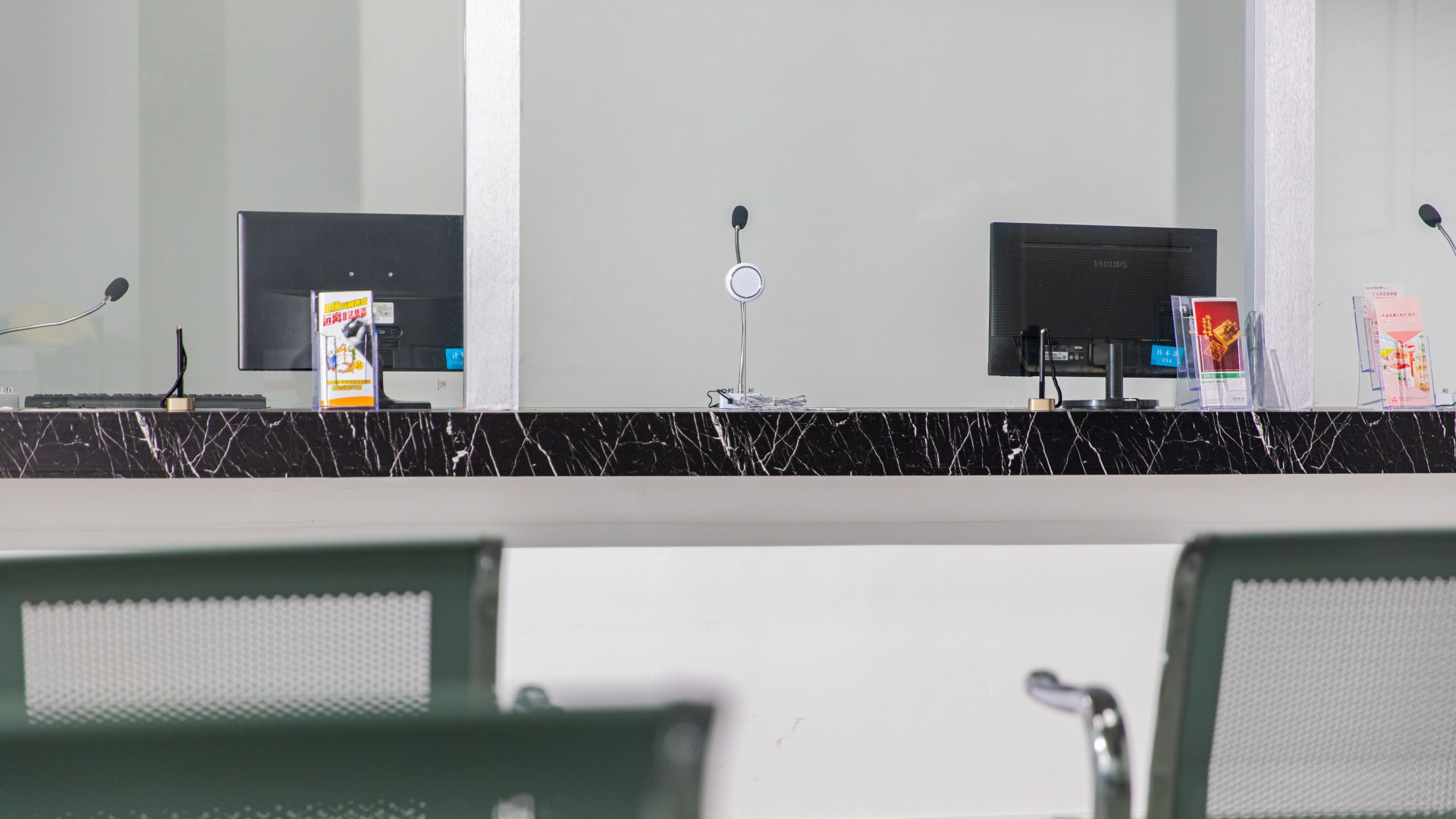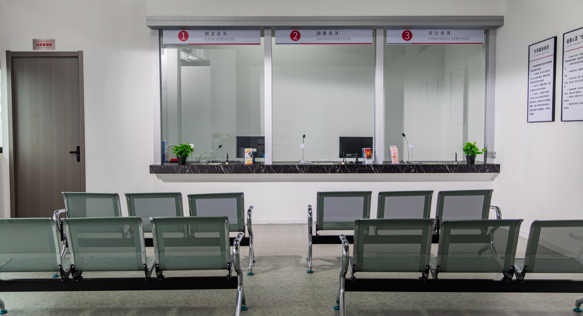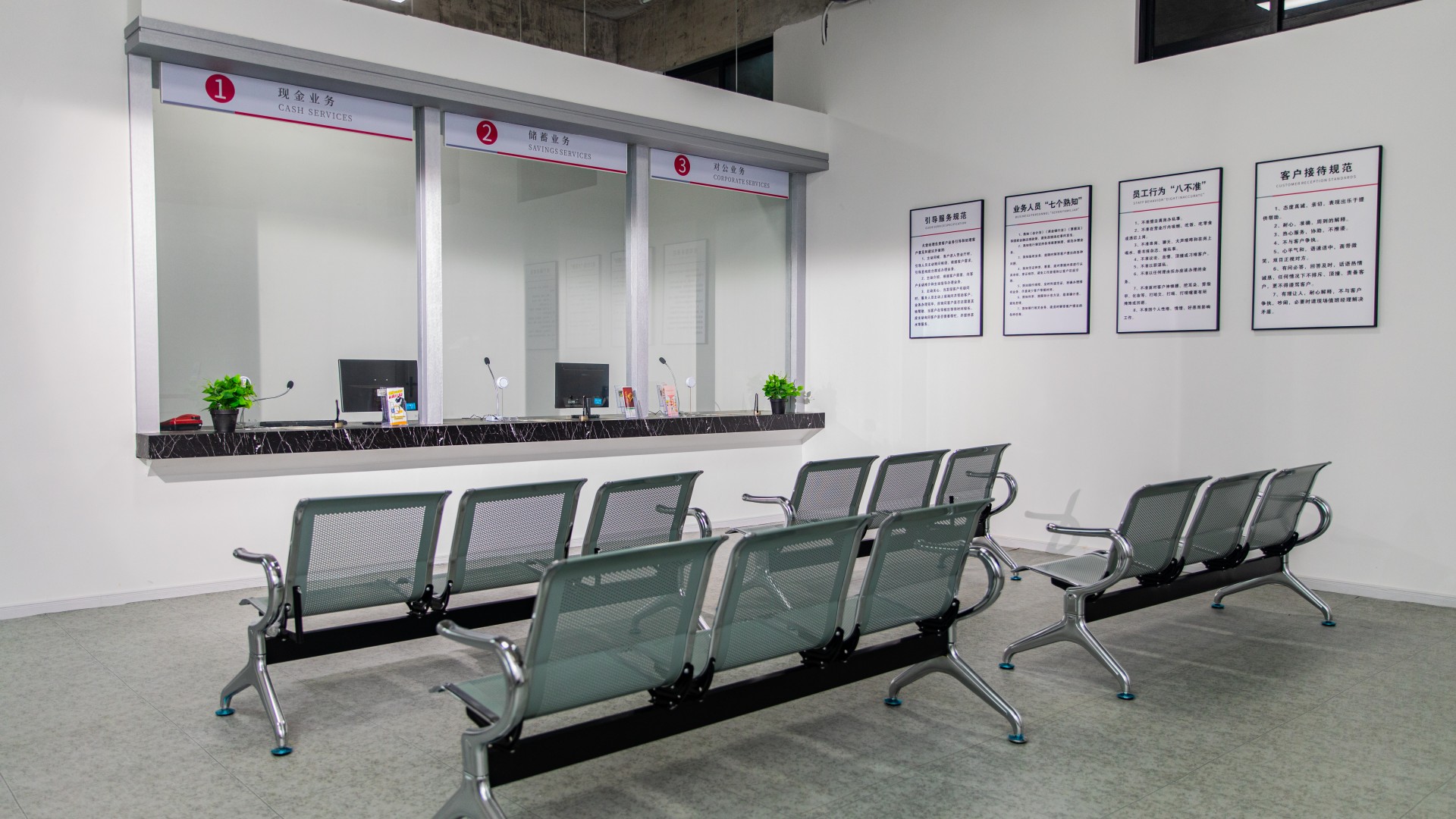 金融主题实景棚涵盖:接待台、银行大厅、柜台区等场景。