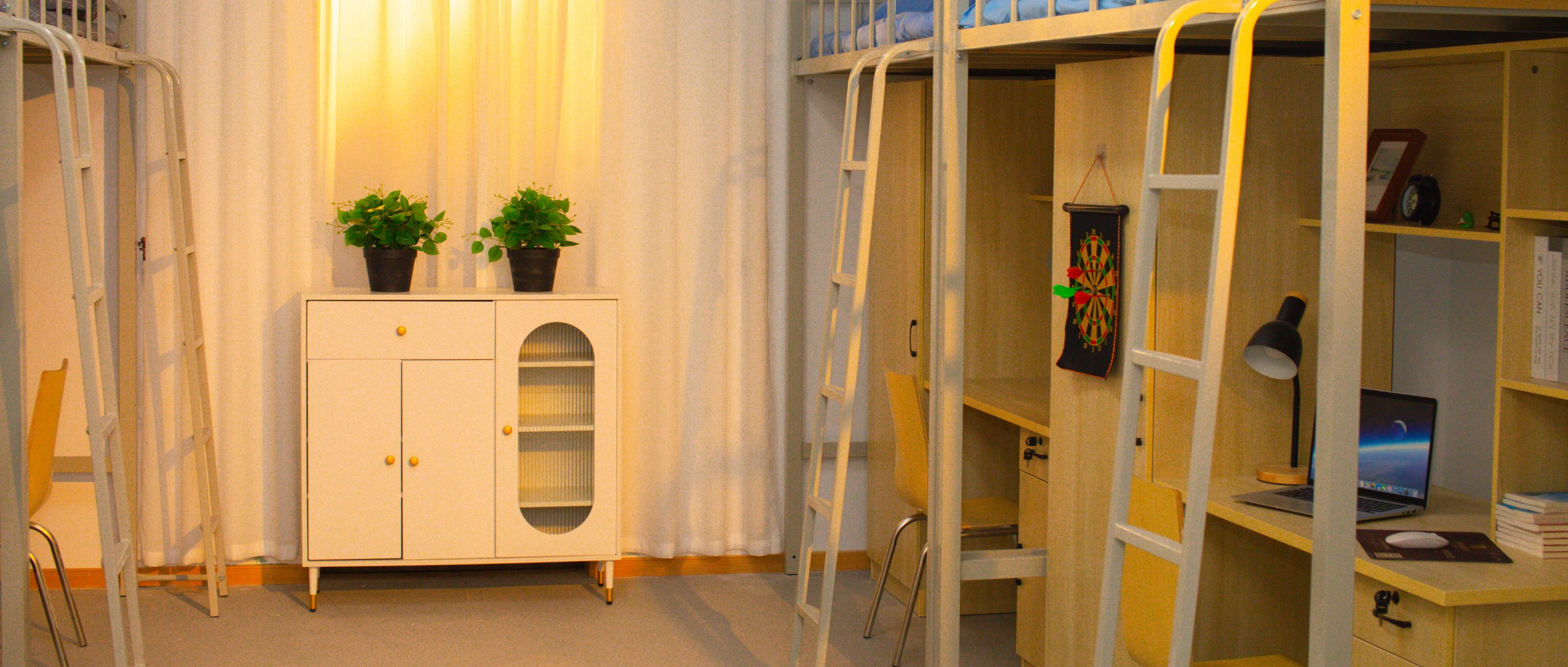 学校主题实景棚涵盖:教室、学生宿舍、实验室等场景。